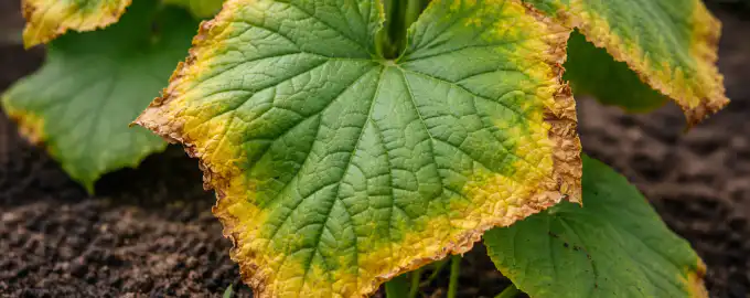 Veel datsja-kwekers krijgen in het voorjaar te maken met “randbrand” bij komkommerzaailingen, wanneer de rand van de bladeren snel geel en