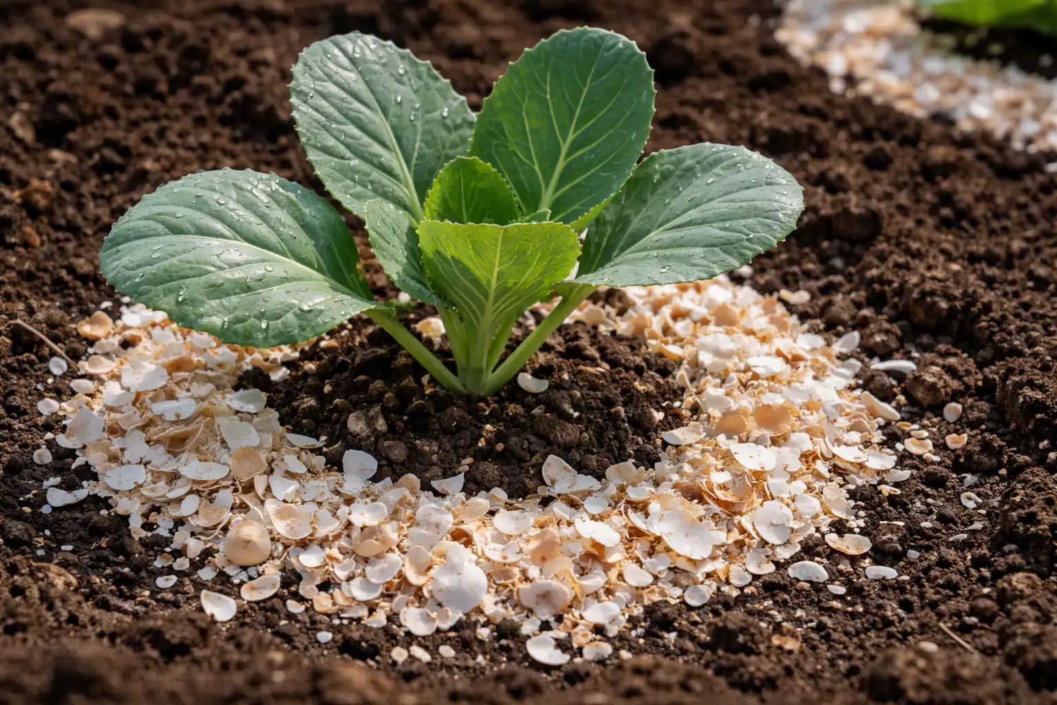 “Om ervoor te zorgen dat de schelp sneller calcium begint af te geven, moet het bijna tot stof worden vermalen. De grote stukken werken als een mechanische bescherming, terwijl het poeder werkt als een langdurige meststof om een sterk wortelstelsel te vormen.”