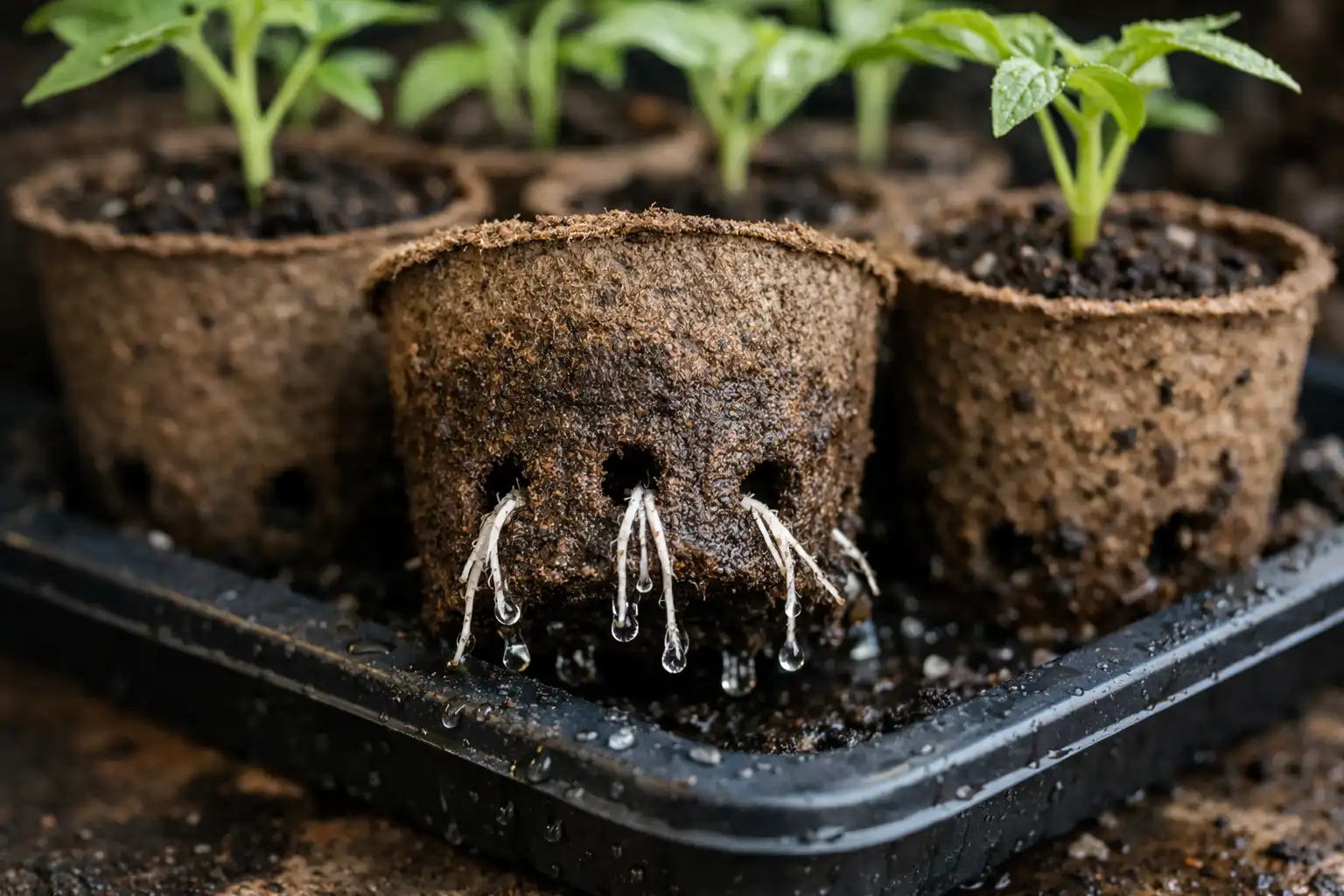 Waarom groeien zaailingen langzamer in turf dan in plastic?