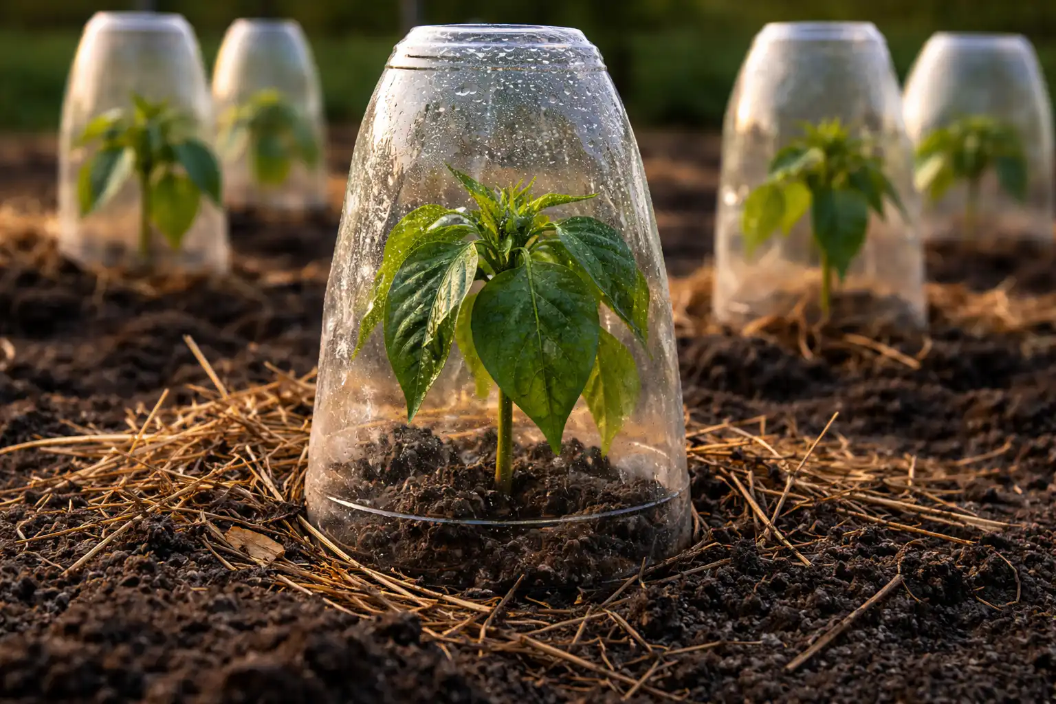 Geheime tip: Als paprika’s direct na het planten beginnen te verwelken, bedek elke plant dan twee tot drie dagen met een kap van gewoon papier of een doorgesneden plastic fles zonder deksel. Dit creëert een microklimaat met een hoge luchtvochtigheid en vermindert de verdamping via de bladeren terwijl de wortels zich aanpassen.