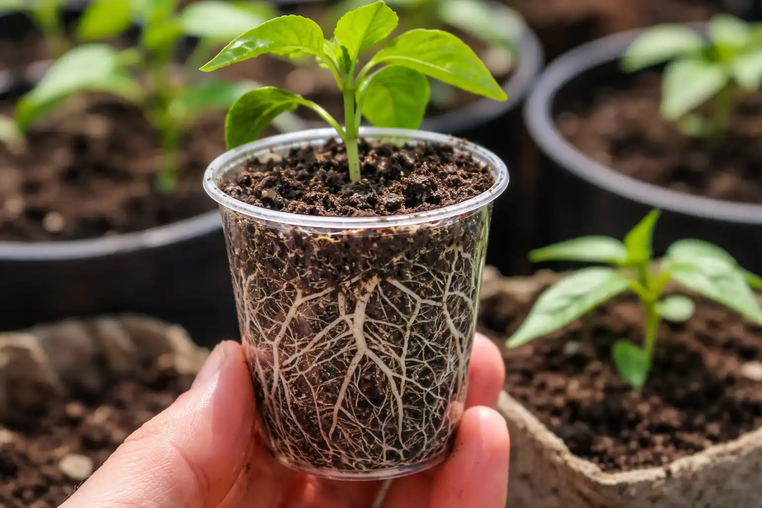 Het optimale startvolume voor peperzaailingen is 100 tot 180 ml kopjes.