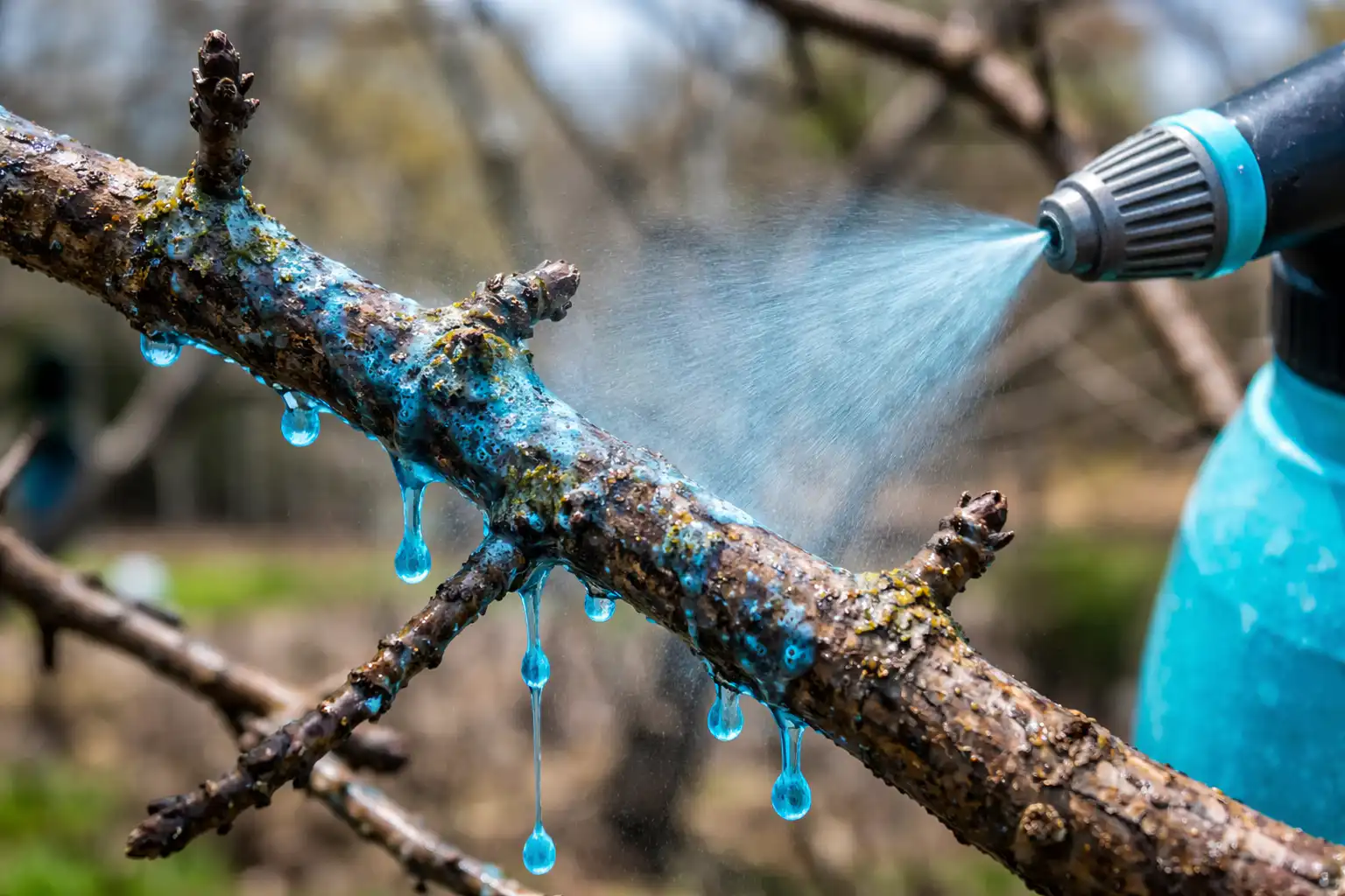 De belangrijkste nuance: spuiten moet worden uitgevoerd bij een luchttemperatuur van +5 tot +10 graden Celsius. Bij vorst zal het preparaat niet werken, en bij warm weer kan koper chemische verbranding van de bast veroorzaken.