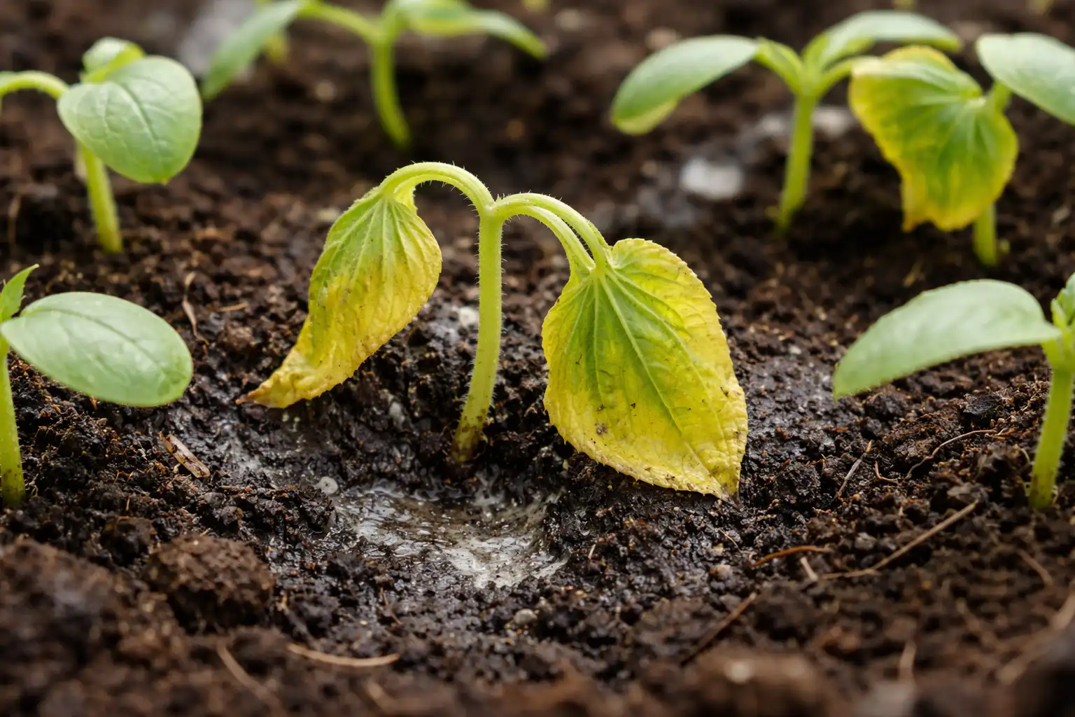 Je loopt ’s ochtends je kas of vensterbank in en ziet een triest beeld: de krachtige komkommerscheuten van gisteren zijn geel geworden, in elkaar gezakt en op de grond gevallen. Dit is een klassiek probleem dat elk jaar duizenden zaailingen de das omdoet, maar het goede nieuws is dat je de oorzaak in vijf minuten kunt achterhalen en degenen die nog overeind hangen kunt redden.