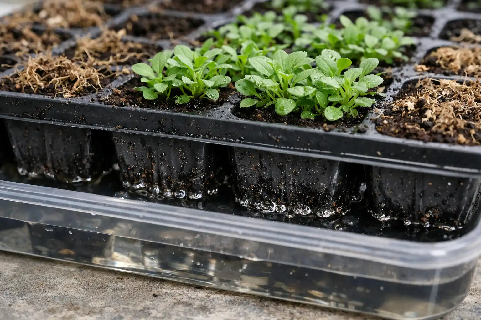 Verwijder het deksel van de container geleidelijk als de planten gewend raken aan droge lucht.