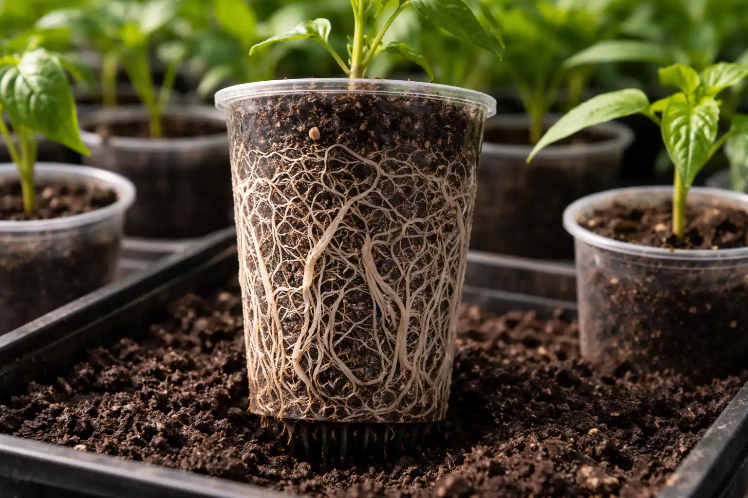 Een goed wortelstelsel is de belangrijkste garantie voor een hoge opbrengst paprika’s aan het einde van het seizoen.