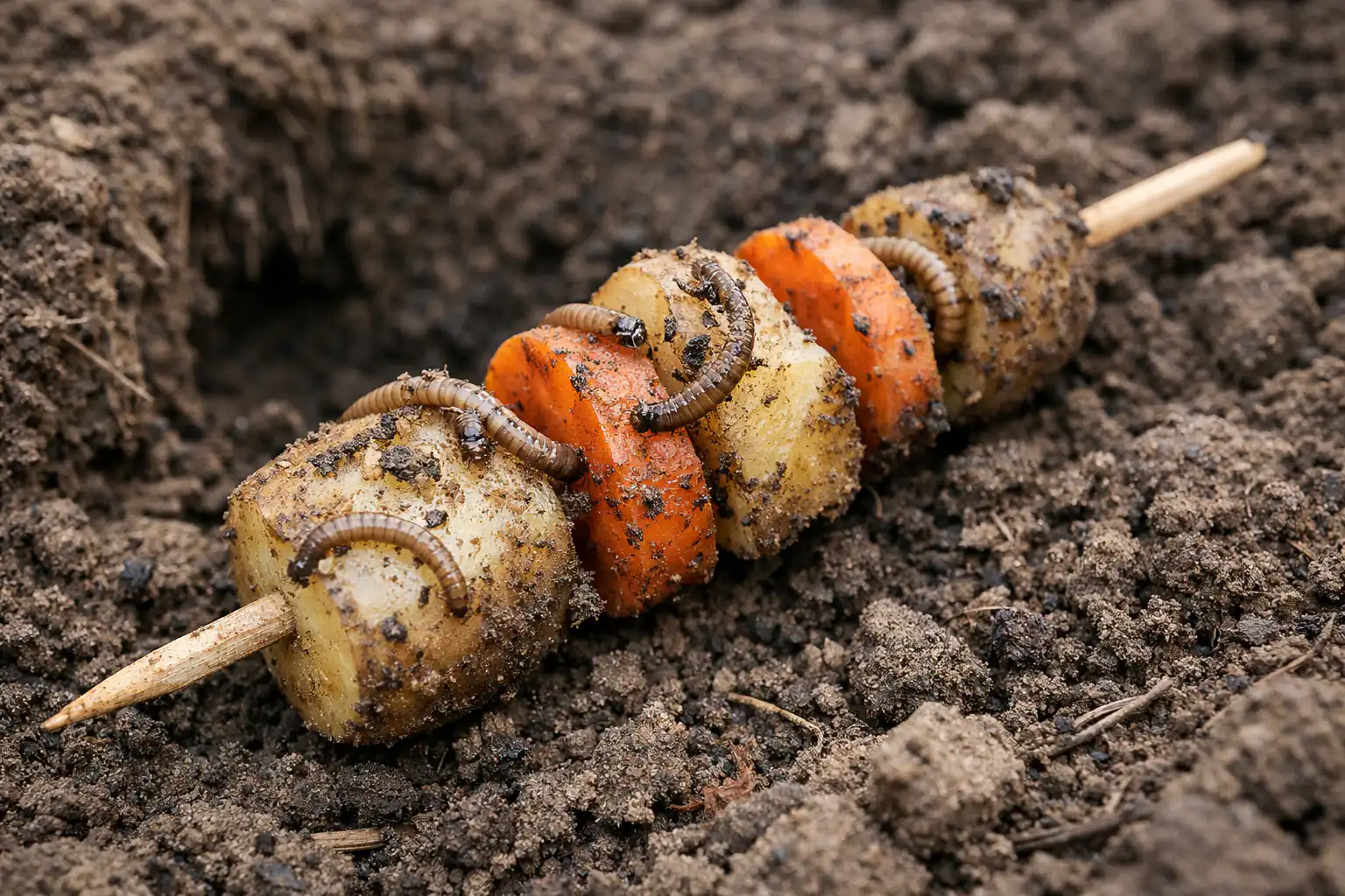 Gebruik lokaas van wortelgroenten. Snijd oude aardappels of wortels in grote stukken en steek ze op houten spiesen.