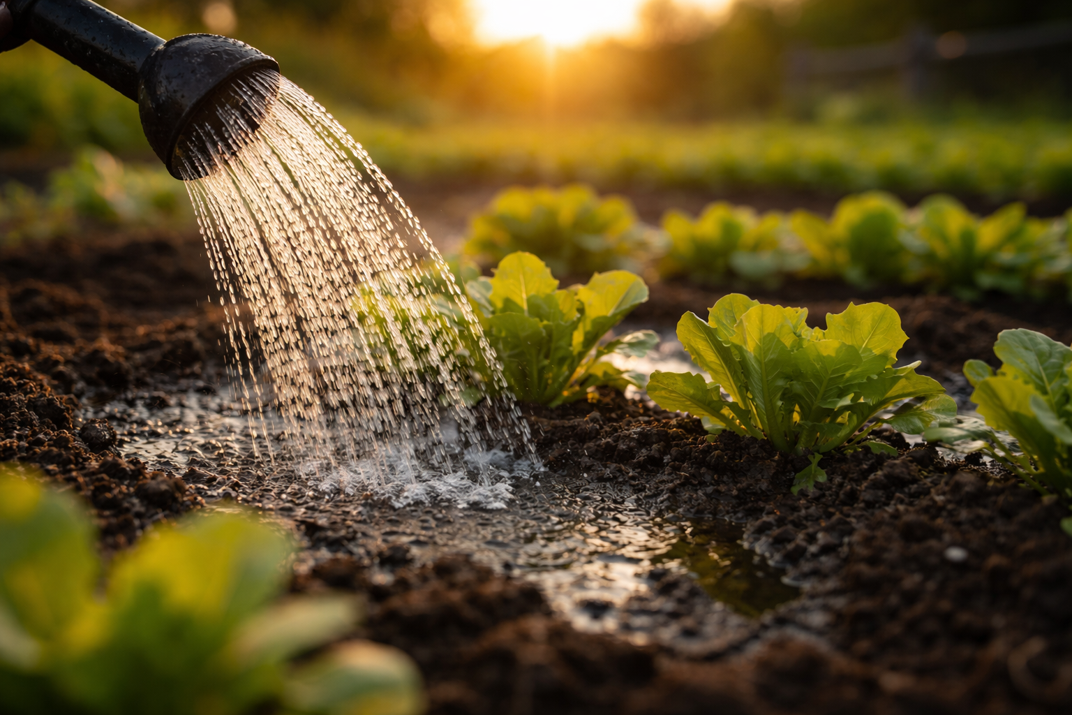 Een juiste watertoewijzing in de moestuin legt de basis voor een gezonde groei van alle tuingewassen. Avondbevochtiging helpt planten om onvoorspelbare temperatuurschommelingen in de lente te overleven zonder aan vitaliteit in te boeten. Vochtige grond blijft veel langer bros en voedzaam.