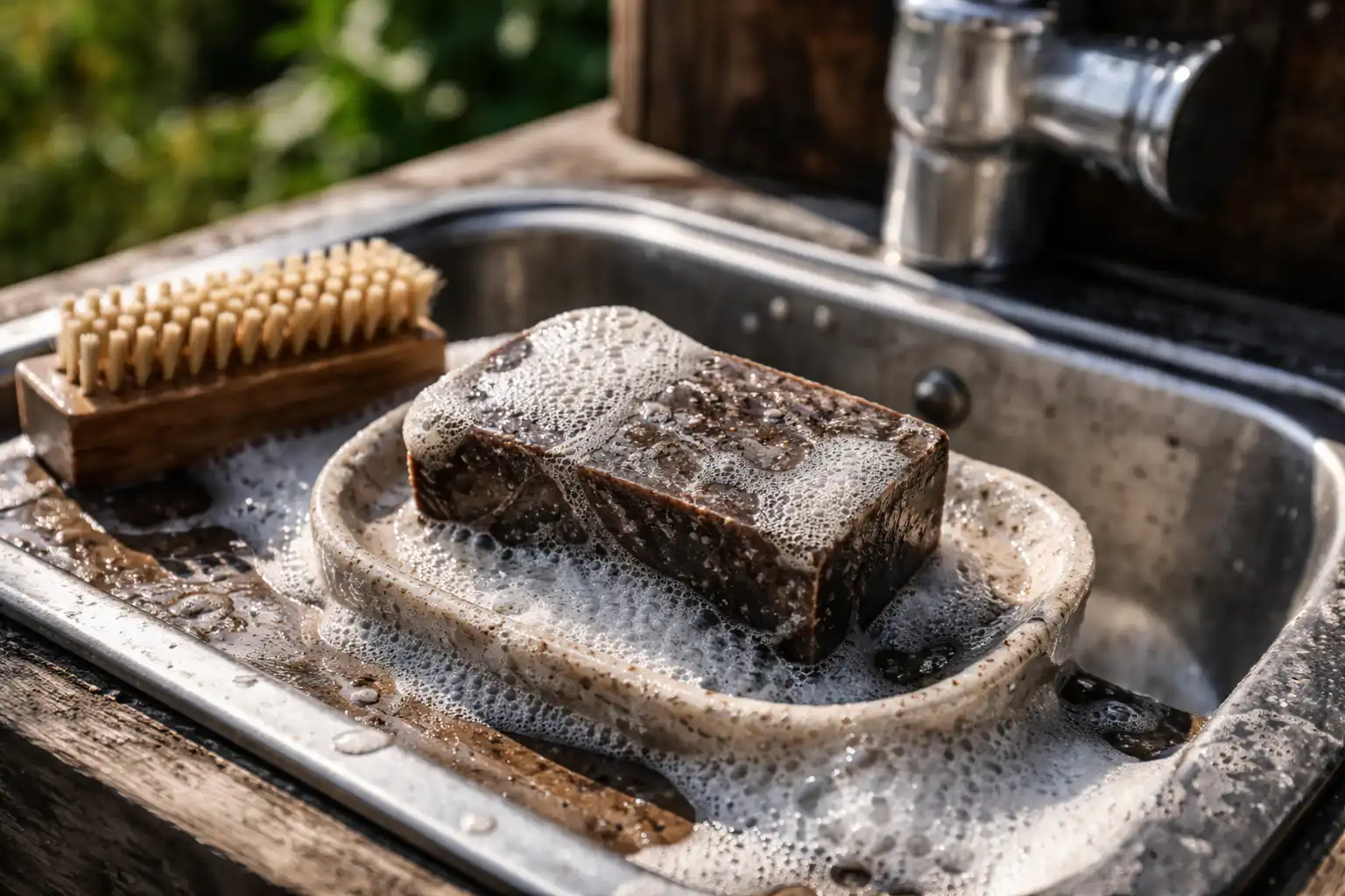 Gebruik alleen klontzeep, want die heeft meestal een hogere concentratie teer dan zijn vloeibare tegenhangers.
