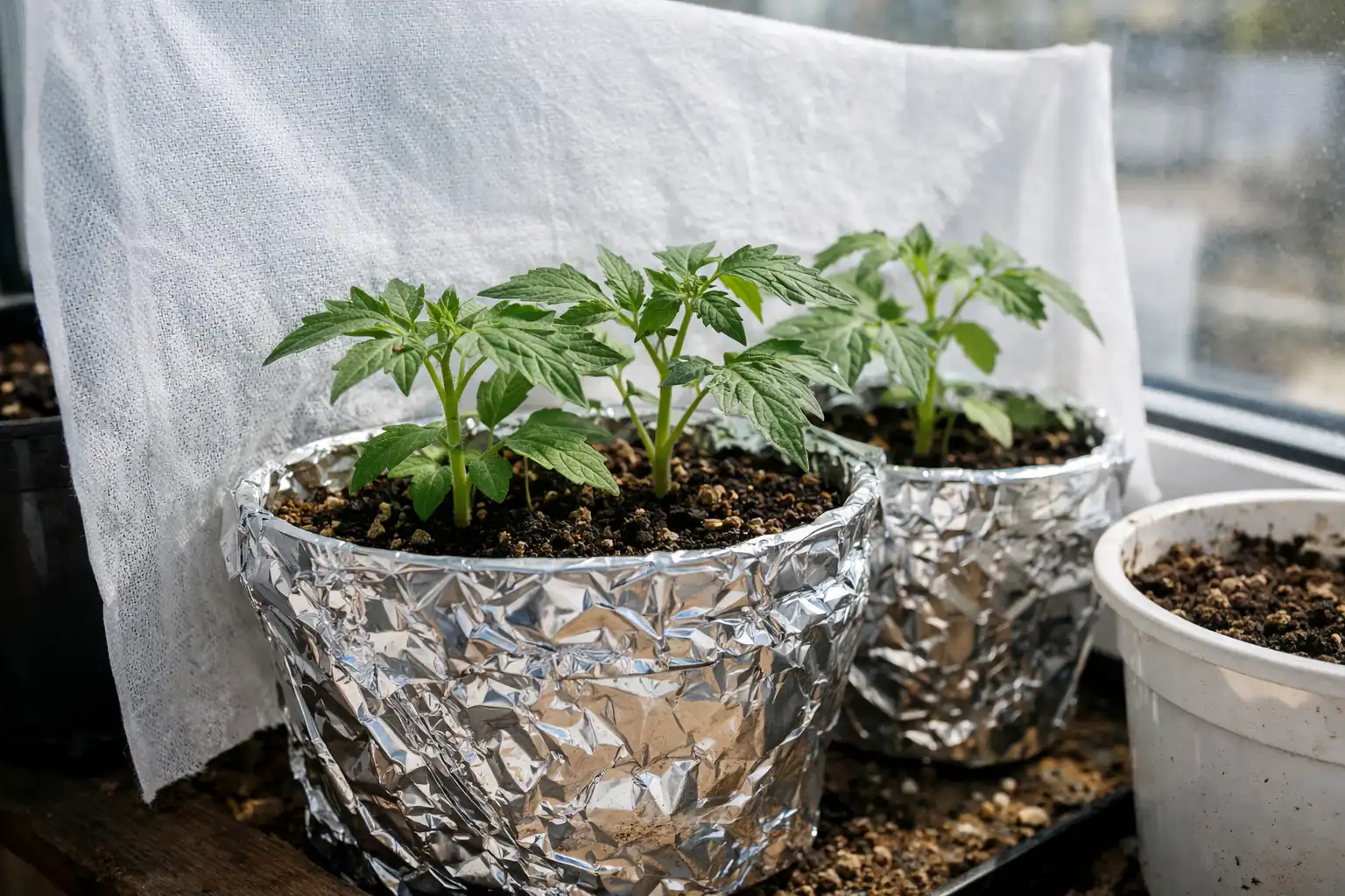 Wikkel de potten in folie of wit papier om de stralen te reflecteren.