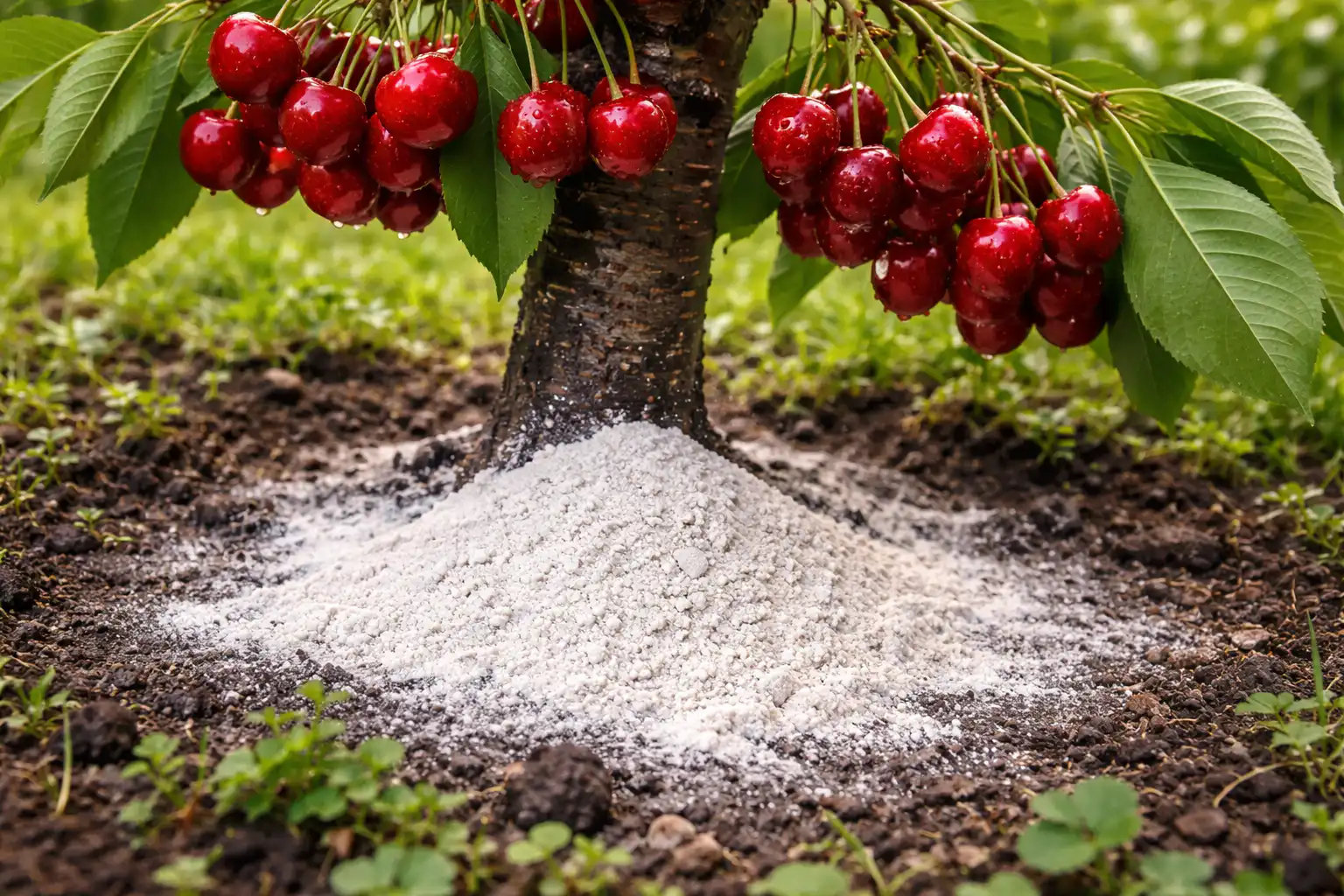 Kersen zijn een gewas dat geen zure omgeving verdraagt. Als de pH van de grond lager is dan 6,0, kunnen de wortels simpelweg geen stikstof en kalium opnemen, hoeveel je ook toedient. Dolomietmeel werkt zachter dan kalk, verbrandt jonge zuigende wortels niet en begint juist te werken op het moment van actieve sapbeweging.
