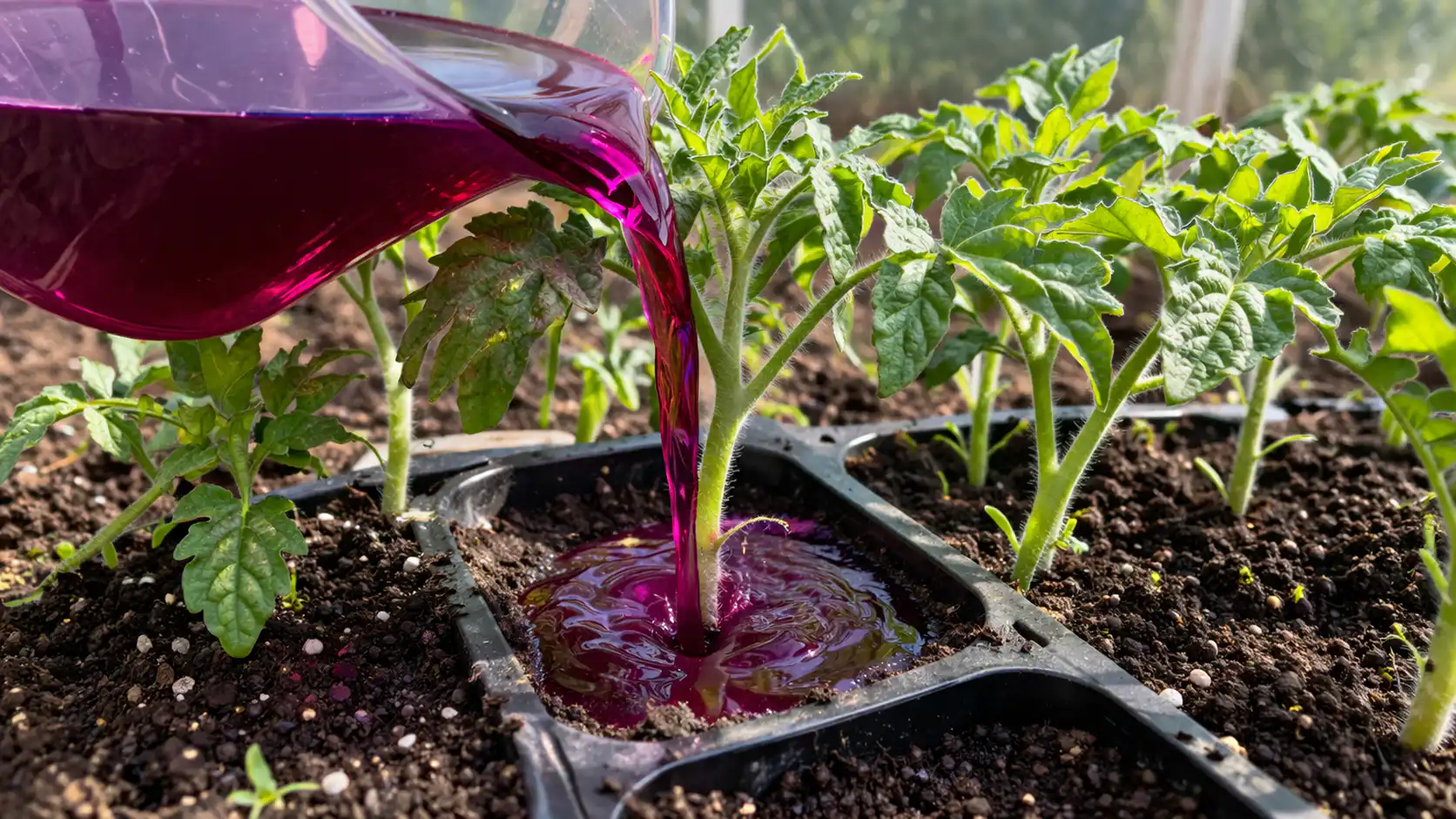 Ondanks de enorme voordelen, kaliumpermanganaat is een sterk oxidatiemiddel. Overmatig gebruik kan de zuurgraad van de bodem verhogen, waardoor de opname van andere voedingsstoffen wordt vertraagd.