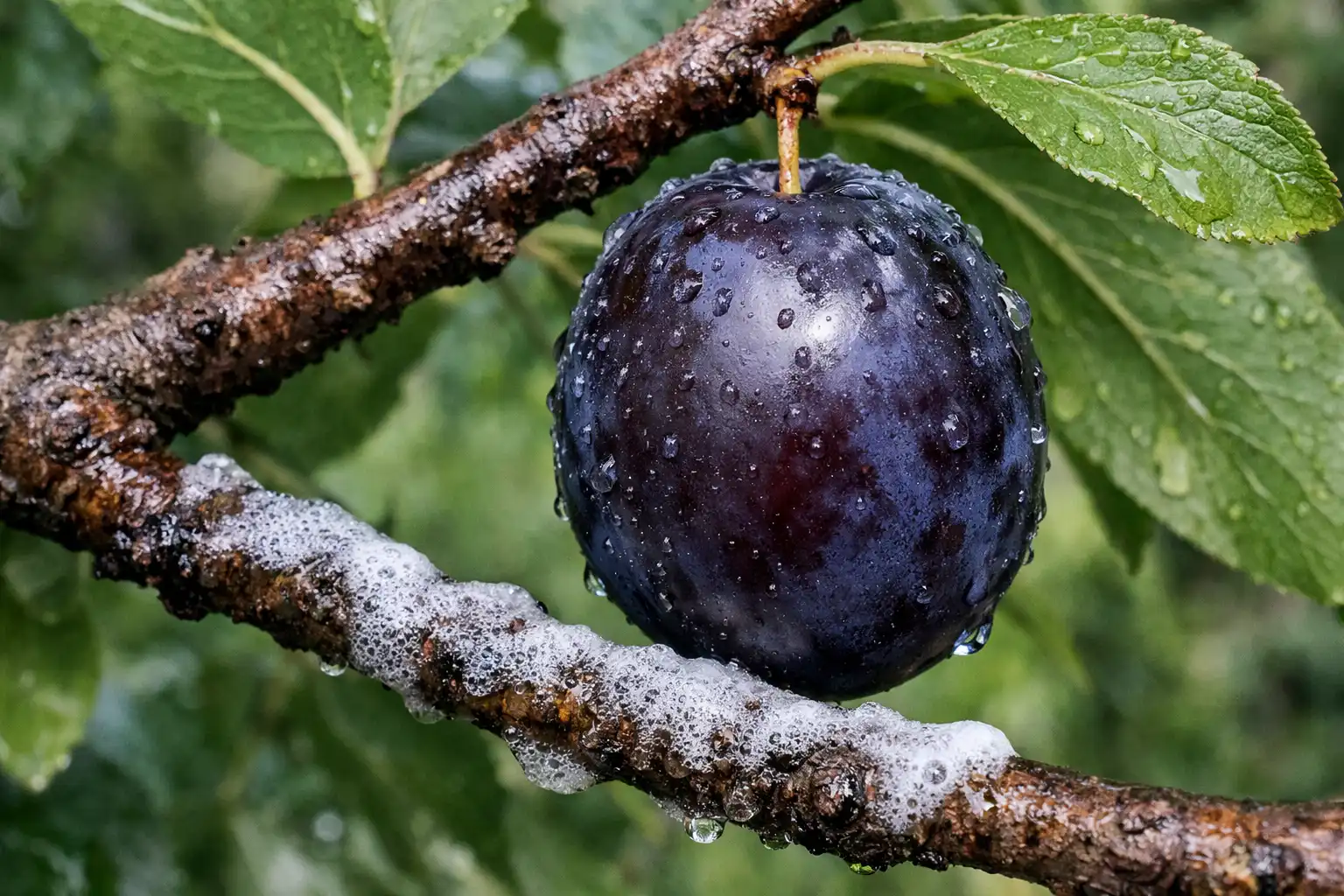 Als de behandeling in het voorjaar is uitgevoerd, zal er tegen de tijd dat de pruimen rijp zijn geen spoor meer van de samenstelling te vinden zijn.
