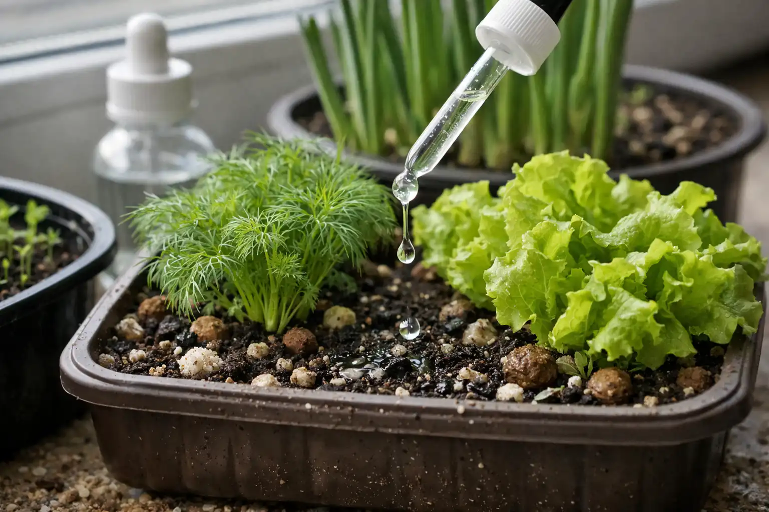 Kortlevende gewassen zoals sla hebben geen extra toevoegingen nodig als er goede grond wordt gebruikt.