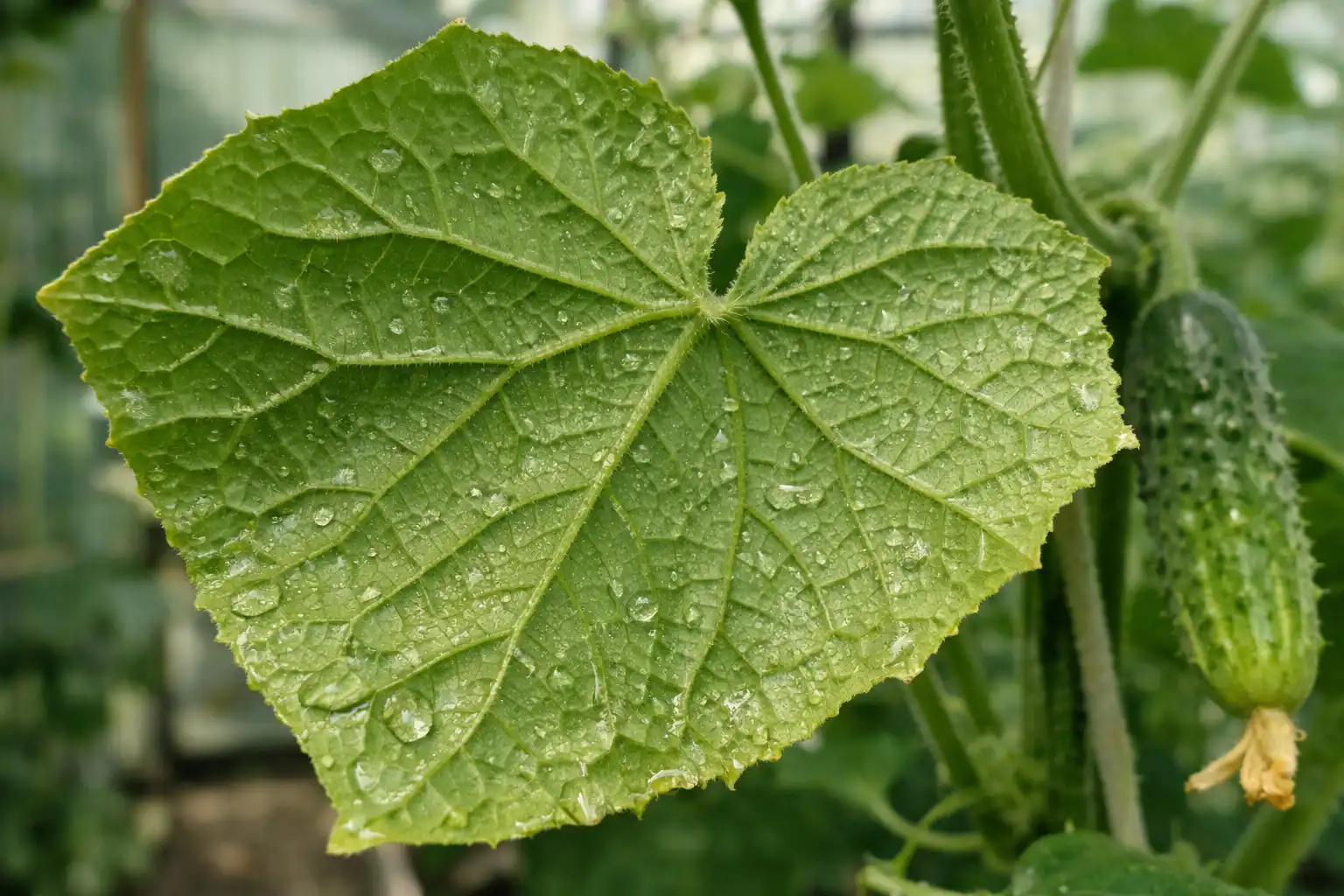 Gezonde planten en schone bladeren garanderen een rijke oogst van sappige komkommers zonder pesticiden.