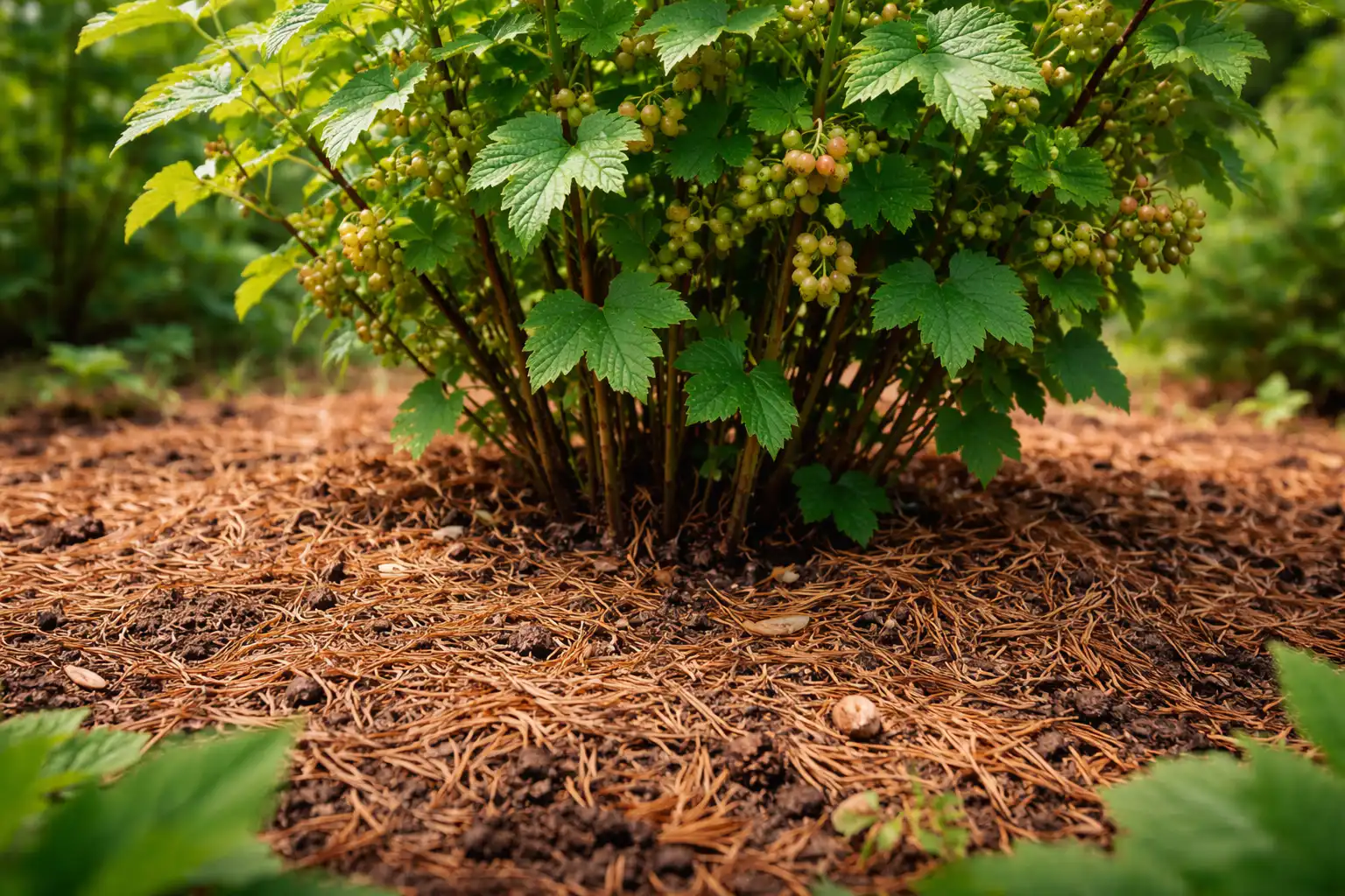 “Als je tekenen van niermijt op je aalbessen opmerkt, mulch ze dan met een dichte laag sparrennaalden – dit zal de plaagpopulatie halverwege de zomer aanzienlijk verminderen zonder dat er pesticiden nodig zijn.”