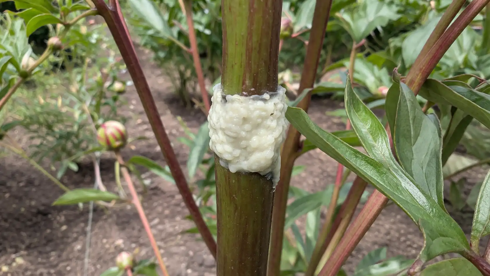 Pioenen vallen op tijdens de ontluikende periode koolhydraten en aminozurendie een grote delicatesse zijn voor mieren. Als ze nu niet worden tegengehouden, zal de struik tegen de bloeitijd geteisterd worden door bladluizen, die de sappen uit de jonge scheuten zuigen.