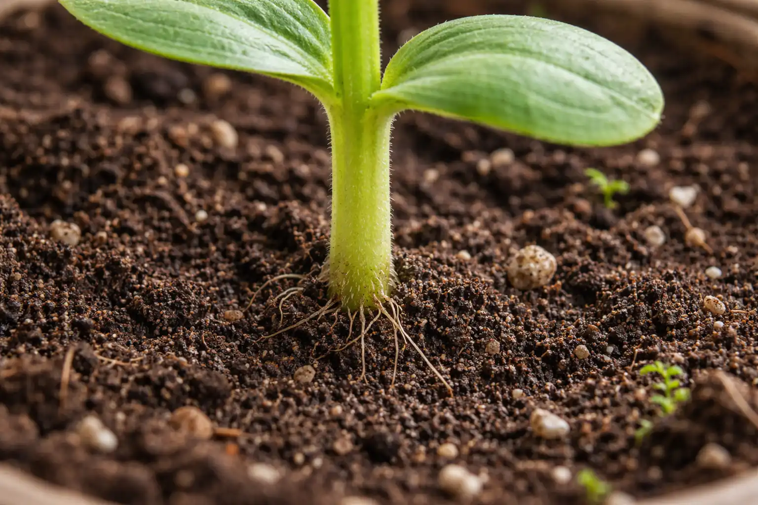 Om de stengels aanvankelijk dik te laten groeien, bereid ik de grond voor met de toevoeging van perliet of vermiculiet. Hierdoor wordt de grond los en kunnen de wortels ademen, wat een directe invloed heeft op de stabiliteit van het bovengrondse deel.
