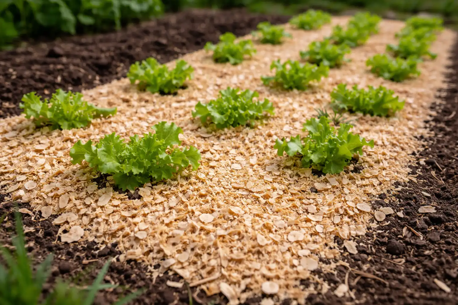 Droog zaagsel vormt een uitstekende fysieke barrière voor slakken en naaktslakken en beschermt tere bladeren.