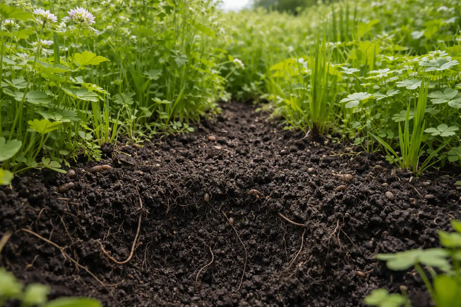 Sideratie is de meest milieuvriendelijke manier om humus te herstellen zonder het gebruik van mest, dat vaak fruitmotlarven en onkruidzaden in het perceel introduceert.