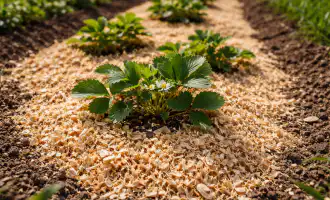 Mulch de bedden met droog gras gemengd met mosterd.
