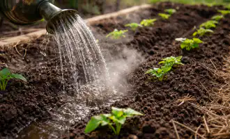 Het is belangrijk om strikt ’s avonds of bij bewolkt weer te sproeien. Waterdruppels op de bladeren in fel zonlicht werken als lenzen en veroorzaken brandwonden, wat de paprika’s verder belast.