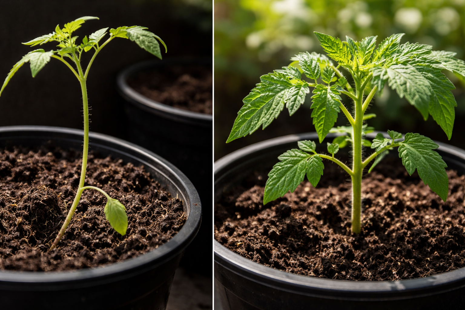 Tomaten zijn planten met een extreem hoge lichtgevoeligheidsdrempel. Wanneer lichtintensiteit valt, treedt een overlevingsmechanisme in werking: de plant besteedt al haar middelen aan opwaartse groei om zich een weg naar de zon te “banen” door denkbeeldige concurrenten. Het resultaat is een lange internode en een lege stengel.